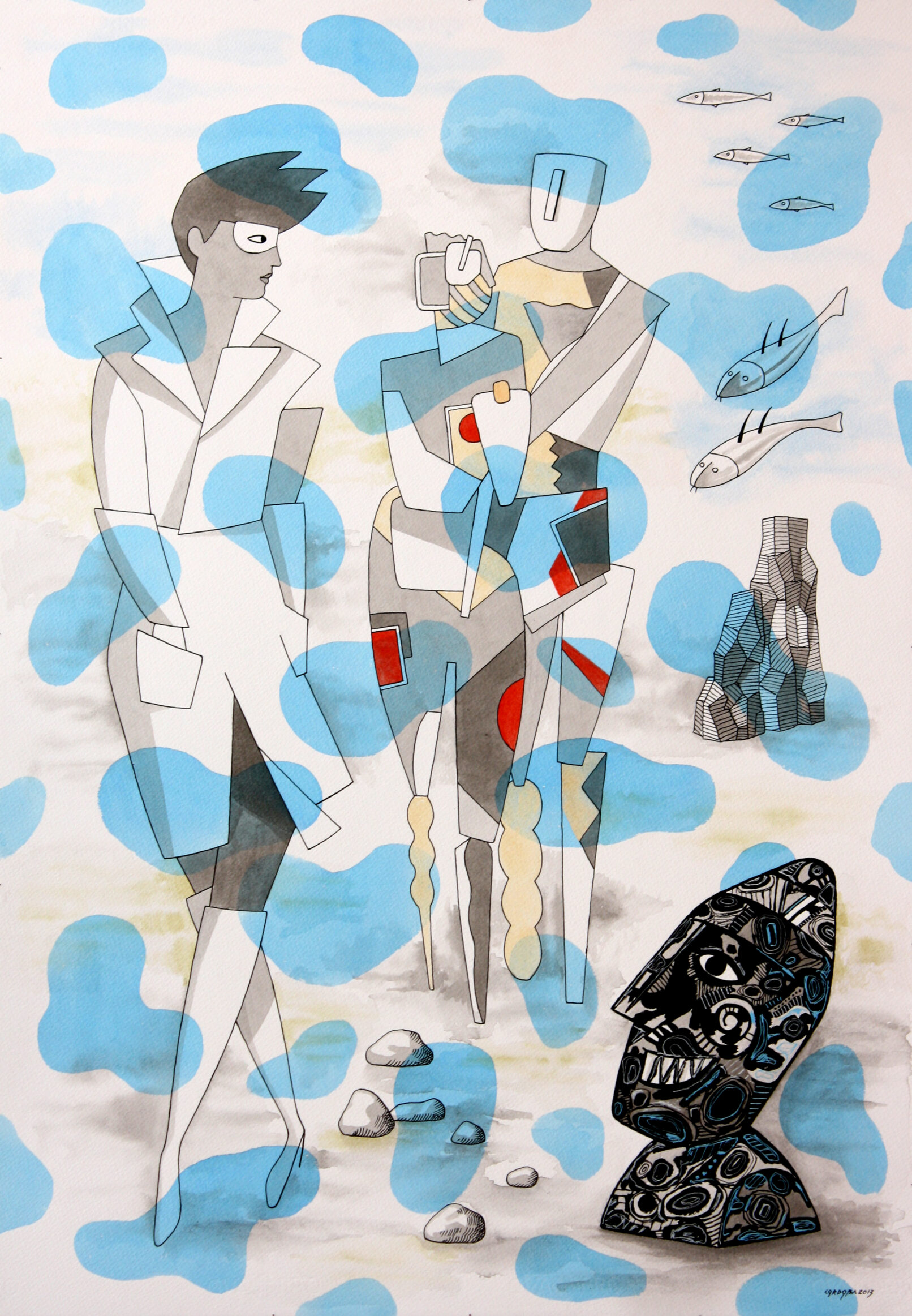 Hombre con pez en la cabeza